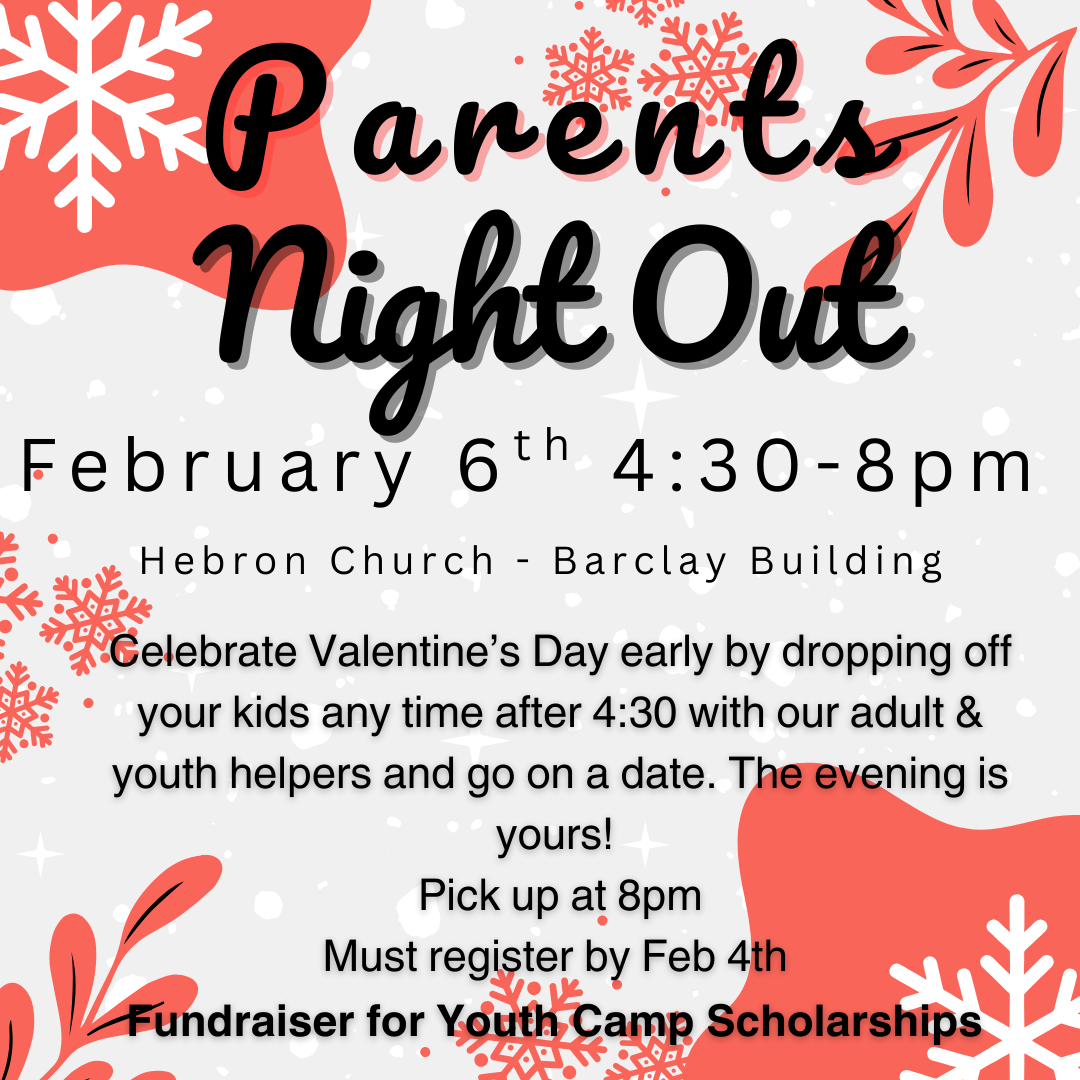 Celebrate Valentine’s Day early by dropping off your kids any time after 4:30 with our adult & youth helpers and go out on a date.