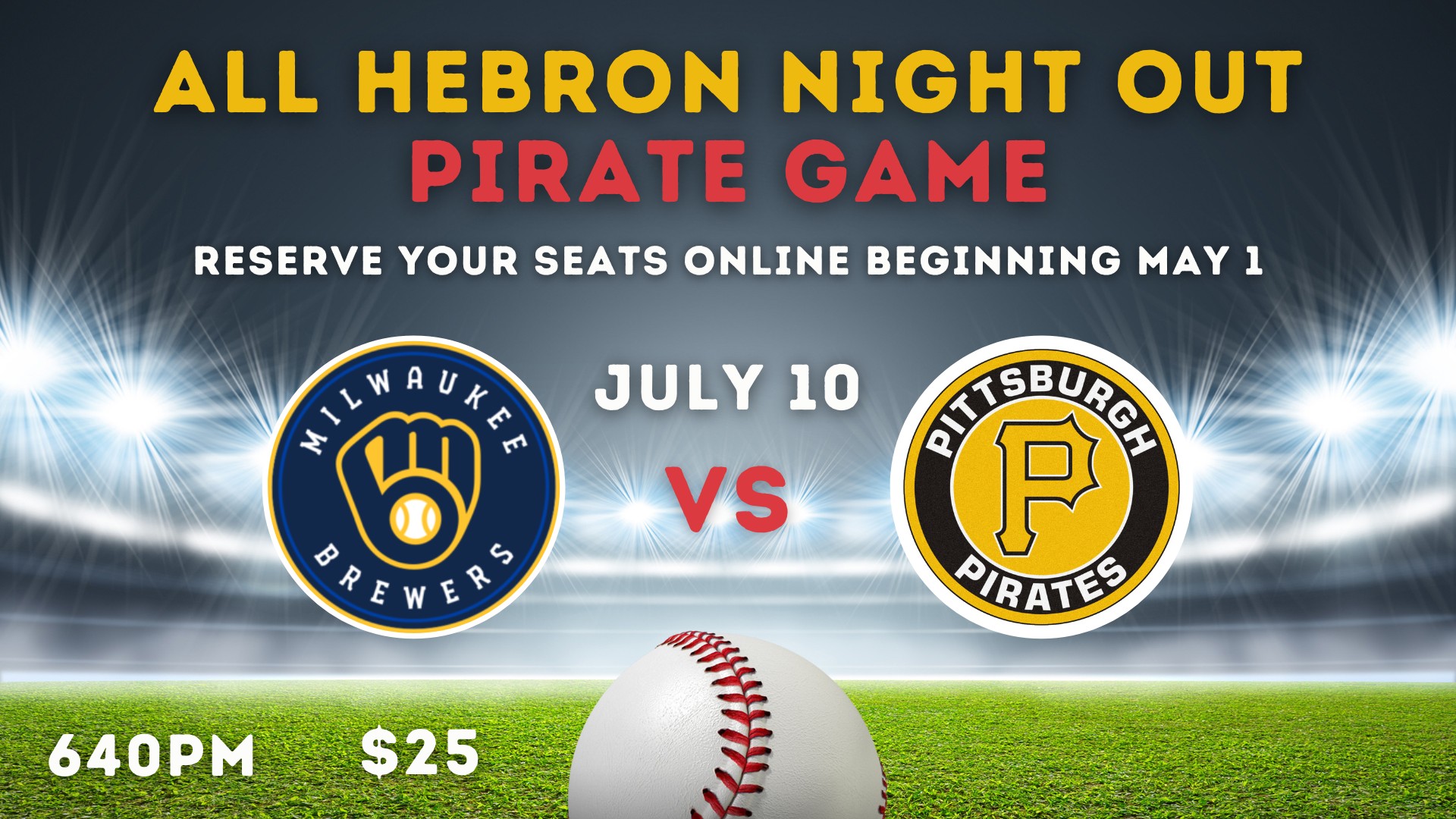 Join us for the Pirates vs Milwaukee Brewers game on Friday, July 10 at 6:40 PM. This is a great way to invite the whole family and a few friends to get together for a night of fellowship, baseball, and fireworks. Tickets cost $25 each and have a $5 value for food, beverages, or merchandise built into the ticket price. We will end the night with a post-game Zambelli fireworks show!