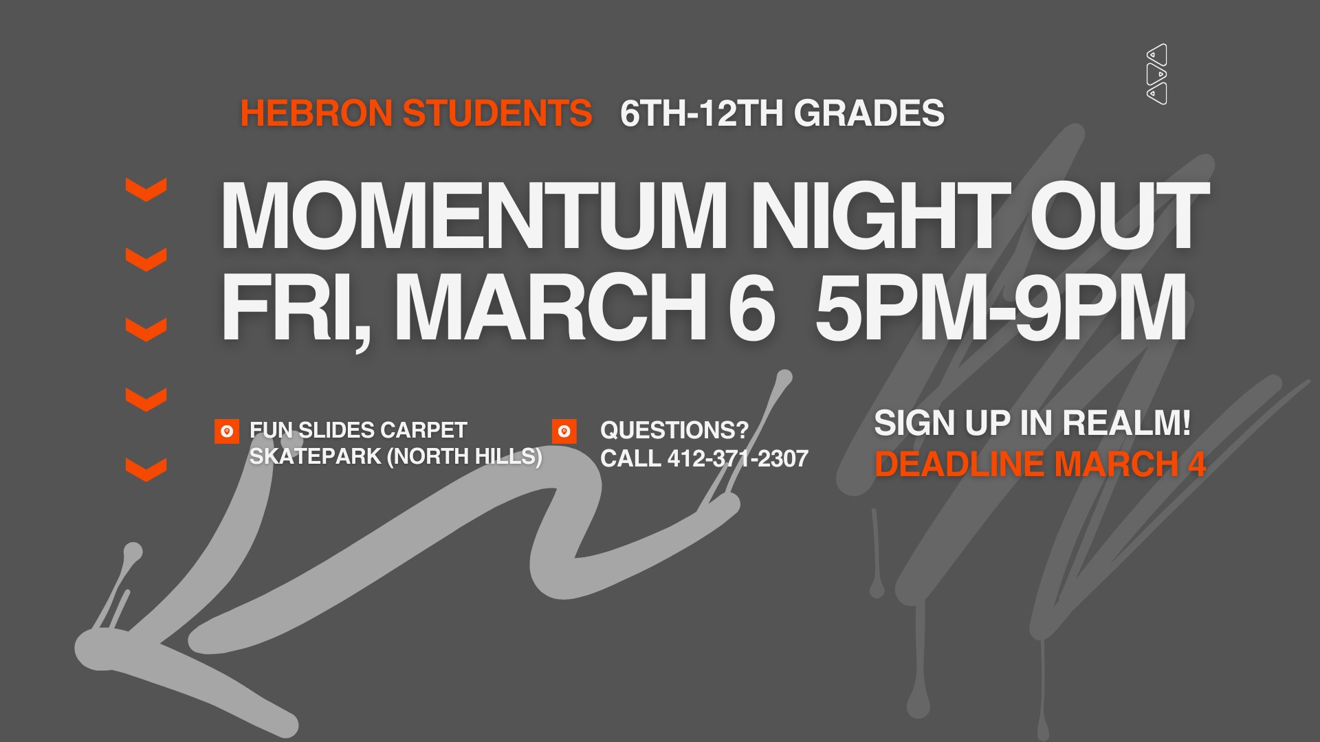 Join us as we go to Fun Slides Carpet Skate Park in the North Hills for a night of amazing activities. Carpet skates are provided. You can bring your own helmet.