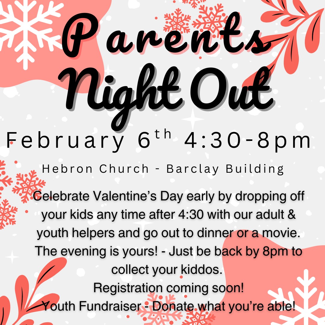 Celebrate Valentine’s Day early by dropping off your kids any time after 4:30 with our adult & youth helpers and go out to dinner or a movie.